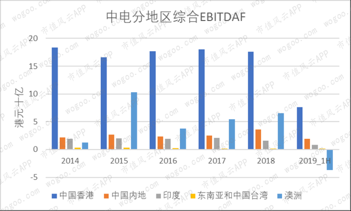 澳洲业务的综合EBITDAF为65.66亿港元,是中电的第二大利润来源,不过波动非常大。这也印证了风云君在前面所讲的澳洲电力市场的特征。