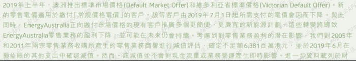 另外,2019年上半年营业利润率和净利润率分别下降至1.1%和-0.8%,与澳洲电力零售市场的政策变化等因素导致的商誉减值有关。