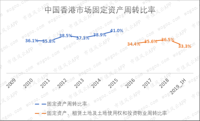 由于披露口径的问题,2015年及之后的数据和2015年之前略有不同。2015年开始披露的数据在固定资产基础上还包括了租赁土地及土地使用权、投资物业,两种口径的固定资产差异为8%。