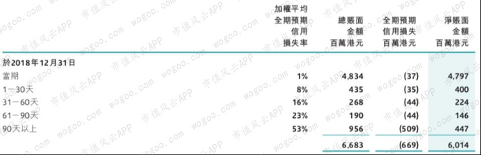 澳洲业务截至2018年底的应收账款总帐面金额为66.83亿港元,预期信用损失为6.69亿港元,总的预期损失率达到10.01%。