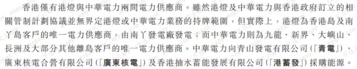 具体来说,中电和港灯(02638.HK)垄断了香港的电力供应,其中中电的业务主要位于九龙、新界、大屿山、长洲及大部分其他离岛客户。