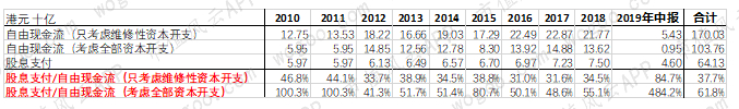 (注:缺少2009年的维修性资本开支数据,导致无法计算当年的自由现金流)