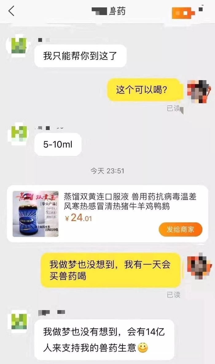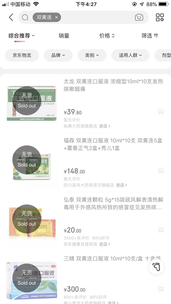 不仅双黄连口服液全网脱销,连兽用双黄连都被抢光了。