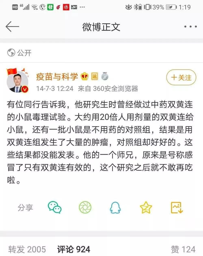 还有博主表示,“研究之后再也不敢吃(双黄连)了。”