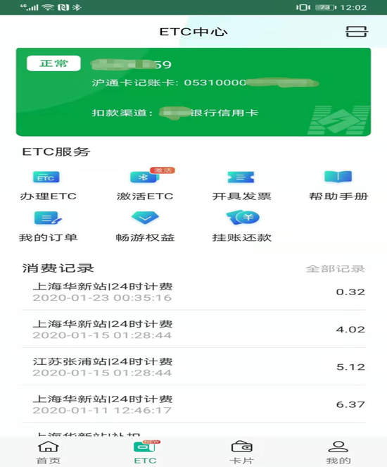 图1:“上海交通卡”APP可查询上海车主ETC缴费情况