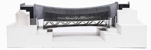 再举几个例子。比如上下品牌的碳纤维椅,设计师使用了碳纤维这种新材料,在材料和工艺上进行了创新的探索,但是它背后其实是有传统方正的明式家具的影子。还有张永和的吉首美术馆模型,这座美术馆是张永和受黄永玉的邀请,进行了一次城市规划上的更新,他将现代化的美术馆和桥结合在一起,并且与周围水边的青瓦白墙的民居相融合。