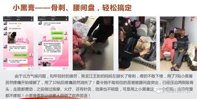 这款产品适用于风湿性关节炎及由风湿性关节炎引起的疼痛、麻木、关节肿胀病症的辅助治疗。虽然一类、二类医疗器械号贴剂产品属医辅耗材,但只能起物理辅助作用,不含有任何药物成份,没有治疗效果也不能被宣传具有治疗功效。然而,在花红微商的代理商们制作的一些宣传材料当中,此产品却被吹嘘得神乎其神。