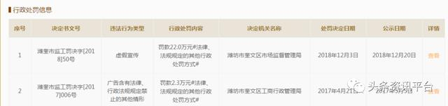 2017年,山东花红生物科技有限公司因广告含有法律、行政法规规定禁止的其他情形,而被潍坊市奎文区工商行政管理局处以行政处罚;2018年,该公司又因虚假宣传,遭到了潍坊市奎文区市场监督管理局的行政处罚,两次处罚金额累计达到24.3万余元。