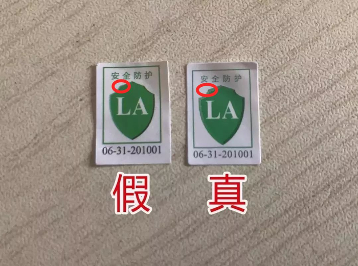 第二步看印刷。包括包装上商标、使用说明的字体印刷是否清晰、布局是否美观。对于市场上常见贴有劳安标志的口罩,对于“LA”印刷的辨别尤为重要。