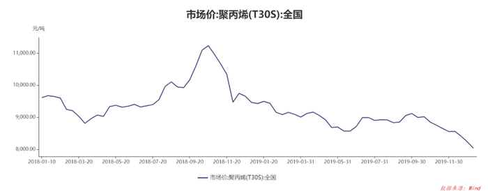 聚丙烯价格走势图(2018年1月1日至2020年1月10日)