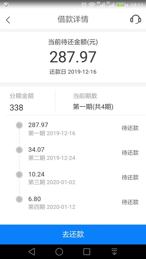 除了直接从银行卡扣钱,据用户投诉信息,上海造艺旗下APP的个人信用评估报告的费用还能通过分期的方式支付,若逾期没有支付,会遭遇平台催收。一名楚姓用户2019年12月14日投诉称,其当日下载了豹子贷APP,注册登陆后系统提示让绑定银行卡和手机号,之后点击界面上的立即借款,然后点击下一步就提示订购产品,并没有提示付款确认,也没有输入支付密码,就收到第三方借款338元以信用分期偿还的征信评估费用。该用户公开的截图显示,338元一共分了4期,第一期还款287.97元,第二至四期分别还款34.07元、10.24元和6.8元。