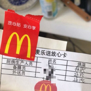 麦当劳也于2月1日宣布,在麦乐送紧急推出无接触配送,用户可以在线与麦乐送配送员约定在何地取外卖,在饿了么、美团等第三方平台上也可选择无接触配送。所有外送订单也将附上“麦乐送放心卡”,标注生产、配膳、外送人员信息,做到餐品、人员可追踪。