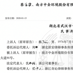 中金环境子公司员工挪用百万资金 出狱后要572万赔偿