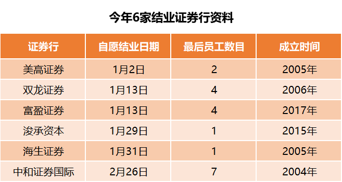 2020年已有6家中小型证券行停业