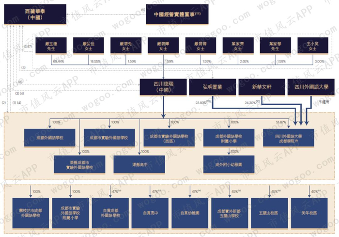 而在境内经营实体方面,公司对全部教学资产的控制通过四川德瑞实现,而四川德瑞也是公司实控人严玉德及其家族成员100%控制的法人实体。
