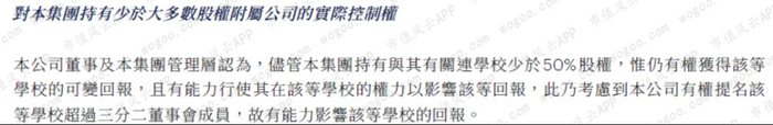 对于包含自贡成都外国语学校、自贡高中在内的诸多实体,公司持股比例在40%-47%之间。由于公司对于这些经营实体同样具有控制权,所以全部做并表处理。
