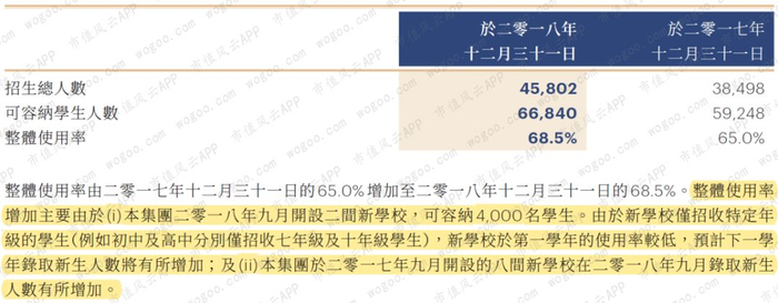 所以小学生人数暴增是因为在用的学校使用率有大幅上升吗?确实是,根据公司解释,主要是2017年9月新开设的8间学校在2018年9月录取新生人数增加所致。
