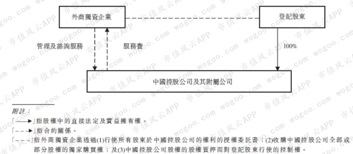 公司通过常见的VIE架构实现外资对中国经营实体的控制,以及中国经营实体盈利向外资股东的传递。