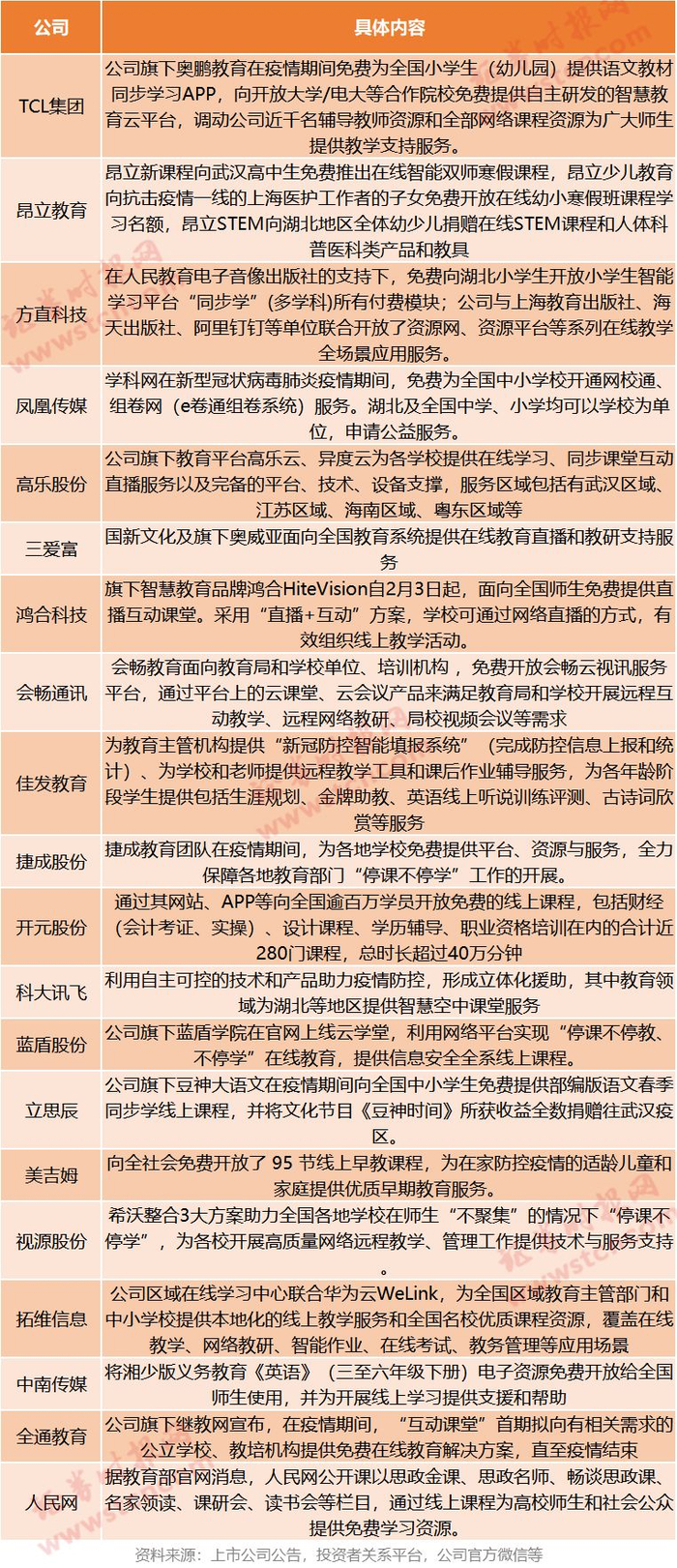 截至2月2日,教育部组织22个在线课程平台免费开放在线课程2.4万余门,覆盖了本科12个学科门类、专科高职18个专业大类。同时,根据梳理,截至2月5日,已有至少20家上市公司宣布“捐课”。
