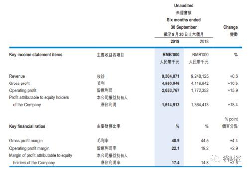 从中国旺旺最新的财报来看,截至9月30日六个月的收益为93.04亿,较上年同期只增加了0.6%,中国旺旺对此解释为夏季冰品销售不及预期所致,而在毛利率有4.4%增长的情况下,归母净利润依然保持了18.4%的增长率。