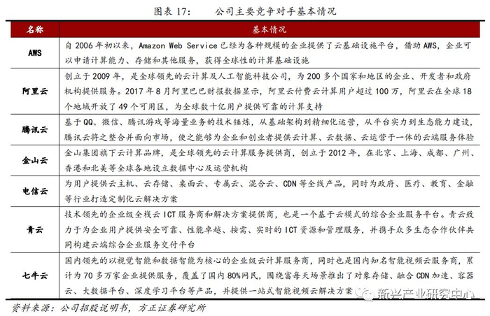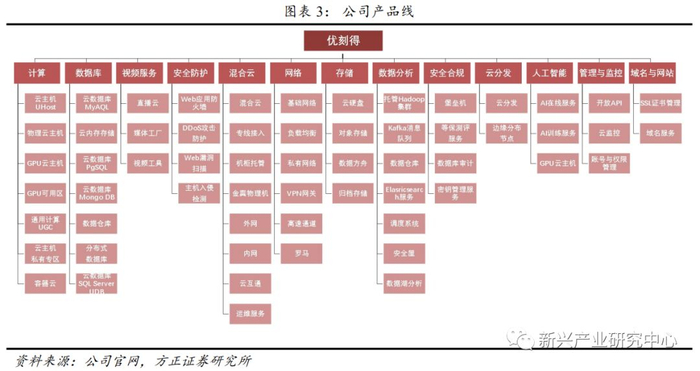 公司是国内领先的中立第三方云计算服务商,自成立以来便专注于云计算服务领域。目前公司的云计算产品线包括计算、网络、安全、数据库、中间件、存储、分发、大数据、容器、无服务器化计算、人工智能等十几个大类共80余款产品,已经逐渐形成了围绕公有云IaaS、基础PaaS产品的较全面的技术能力和产品储备,并逐渐向私有云、混合云、下一代PaaS、人工智能领域拓展。