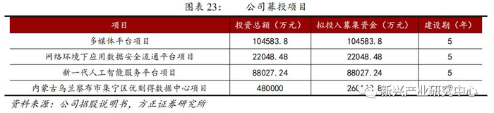 公司募投项目在关键行业、核心技术和服务能力上进行了重点强化。1)关键行业:“多媒体云平台项目”主要在上海、北京等五个地区建设面向新媒体行业和教育行业的多媒体中心节点机房,为相关行业提供优质的计算、网络、存储、大数据分析处理、音视频加速及多媒体 AI 等服务;2)核心技术:“网络环境下应用数据安全流通平台项目”和“新一代人工智能服务平台项目”两个项目分别针对针对市场上存在的数据交换以及于云端的人工智能服务体系进行强化;“内蒙古乌兰察布市集宁区优刻得数据中心项目”总投资金额 48亿元,规划建设5栋云计算中心,可容纳6000个机柜,将为公司云计算业务的发展提供有效支撑。