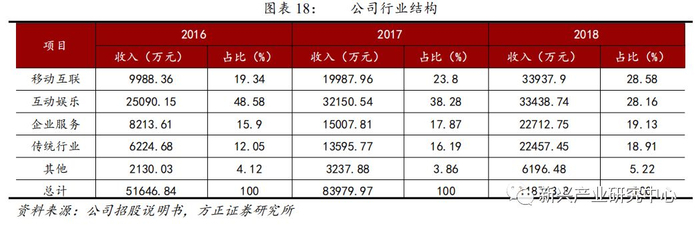 3.1 差异化的市场定位相对阿里云、腾讯云、AWS等国内云计算巨头大而全的战略定位,公司深耕差异化的目标用户市场,主打游戏、电商、直播、在线教育等互联网用户。伴随2012-2013年手游爆发期,公司率先成功切入到移动游戏市场。在游戏行业的口碑逐渐建立之后,公司业务逐步拓展到互联网金融、直播、以及传统企业等其他领域。目前公司成立了多个事业部,主要服务电商、直播、在线教育、零售等领域的公司。从公司收入结构来看,移动互联和互动娱乐行业收入占公司收入约56.7%,且企业服务和传统行业的收入占比正在不断提升。