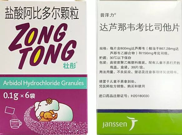阿比朵尔为一款抗病毒老药,由前苏联药物化学研究中心研制,适应于流行性感冒,对其他呼吸道病毒也有作用;达芦那韦则是一款治疗艾滋病的用药,由强生旗下西安杨森生产,2018年7月在中国获批上市,是一种 HIV蛋白酶的抑制剂,通过抑制病毒感染细胞中HIV编码的Gag-Pol多蛋白的裂解,阻止病毒颗粒的形成。
