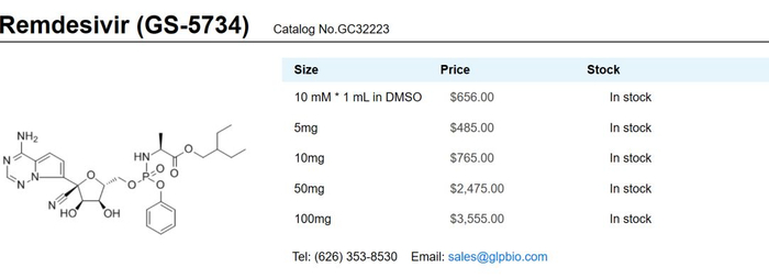 此前,瑞德西韦公开能查到的价格不菲,即便100mg的“大包装”,定价也高达3550美元,单纯按照重量计,这个价格是黄金价格的640倍!