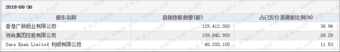 随后,2018年4月16日,全资子公司领尚集团以约9.74亿港元的价格收购兴发铝业(0098.HK)1.098亿H股,占股本总额的26.28%,至今仍是该公司的第二大股东,与第一大股东香港广新铝业有限公司的30.96%非常接近。