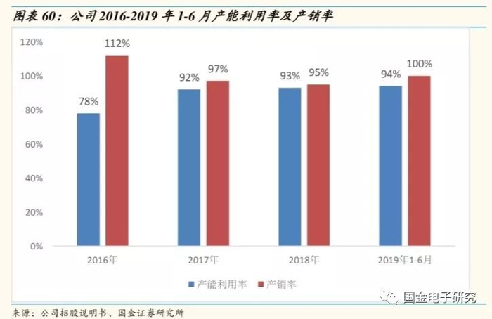 ◾ 随着公司客户的不断拓展,产品逐步获得客户的认可,公司也在积极扩张产能,公司产能利用率逐步上升,产销率也表现较好,2019年1-6月,产销率达到100%。