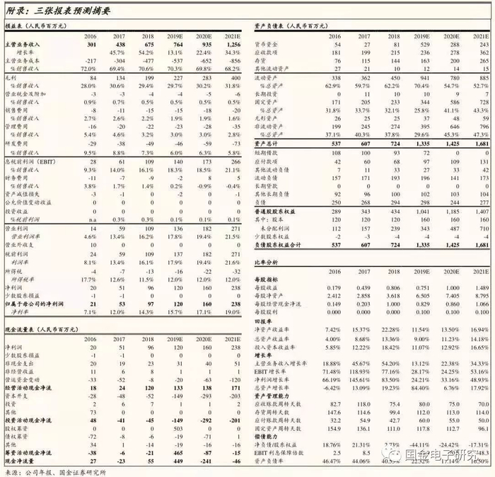 ◾ 预测公司2019-2021年EPS分别为0.75、1.0、1.49元,现价(20.19元)对应PE为26.8、20.2、13.5倍,根据wind一致预期,行业可比公司2020年平均PE为99倍。我们给予公司2020年90倍估值,“买入”评级,目标价90元。