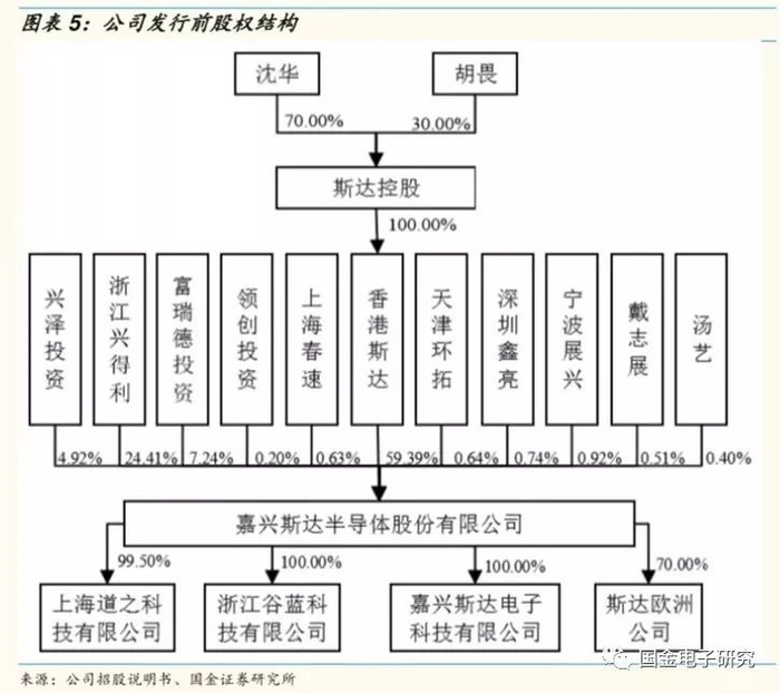 ◾ 公司股权较为集中:公司实际控制人为沈华、胡畏夫妇,通过香港斯达合计持有公司股份59.39%,第二大股东浙江兴得利持股24.41%,员工持股公司富瑞德投资持股7.24%。