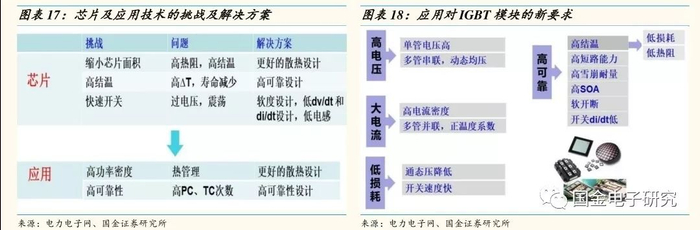 ◾ 随着应用的不断升级,对IGBT芯片及模块也提出了新的要求,要求芯片缩小面积、实现快速开关,要求IGBT承载更高的电压和电流,并且具有低损耗和高可靠等特性。