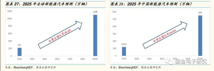 ◾ 彭博新能源财经(BloombergNEF)预测,2025年全球新能源汽车有望达到1100万辆,中国占50%,2030年有望达到2800万辆,2040年将达到5600万辆。届时,电动汽车销量将占到全部新车销量的57%。