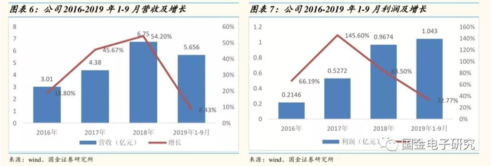 ◾ 近几年,公司营收及利润实现了高速增长,2018年实现营收6.75亿元,同比增长54.2%,利润9674万元,同比增长83.5%,公司2019年前三季度,公司实现营收5.65亿元,同比增长8.43%,实现净利润1.04亿元,同比增长32.77%。