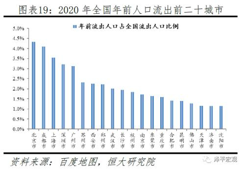 从年前回乡潮流入湖北的人口来源地分布情况,可推测未来返工人口超5成将流向广东、浙江、湖南、江苏、河南等5省,近6成将流向深圳、广州、东莞、上海等20城。根据百度迁移大数据,2019年正月初一开始出现返工现象,返工人数逐日上升,正月初九达到返工高峰。但由于湖北地区疫情严重,湖北17地陆续在2020年1月23至26日封城,1月26日后从湖北流出的人口规模呈迅速下降趋势。但随着疫情稳定、封城解除,大量湖北人口将陆续返工。根据2020年1月10日春运开始至1月24日大年三十流入湖北的人口来源地分布,可推测出未来湖北返工人口的主要流向。从省级层面看,年前流入湖北的人口主要来自广东、浙江、湖南、江苏、河南、上海、福建、江西、重庆、北京、安徽等10省市,合计占比达84.5%,其中前5省合计占比达55.1%;从地级层面看,流入湖北的人口主要来自深圳、广州、东莞、上海、温州、重庆、北京、苏州、杭州、长沙等城市,前20城合计占比达59.2%。