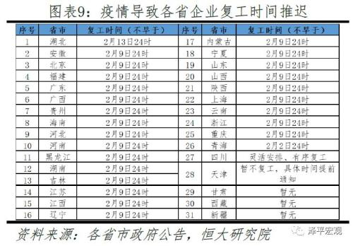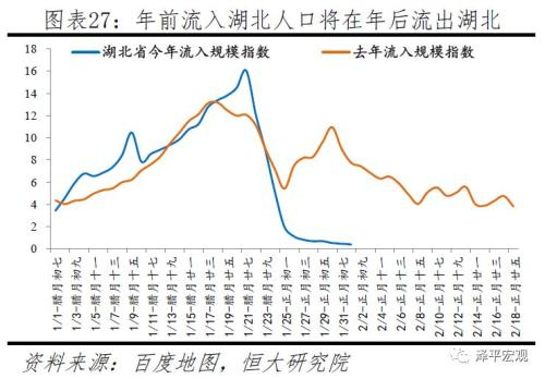 1、节前500万人流出武汉扩散疫情。1)节前从武汉流出的500多万人口约59%流入省内,其中23%流入黄冈、孝感,这与当前68%的确诊案例在湖北省内、和黄冈孝感疫情突出基本对应。实际上,考虑到武汉的九省通衢位置,节前返乡在武汉中转的人口或还有数百万级,这意味着从武汉流出的人口规模实际更大。2)节前流出湖北的人口中55%流向河南、湖南、重庆、江西、广东5省,47%流向重庆、南阳、信阳、九江、长沙等20城;这与浙江、广东、河南、湖南、江西5省确诊案例居前、合计占全国的15%,重庆、温州、深圳、广州、上海、北京等10城确诊案例居前、合计占9%等大致对应。