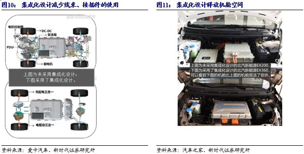 集成化电驱动系统具有降本增效的好处。电驱动系统集成设计可以使驱动系统体积减小、重量降低,车辆各系统的布局更加灵活,降低铜线等整车线束的使用,增加乘客空间和储物空间。同时,车重的降低会使车辆能耗更低、续航里程更长。