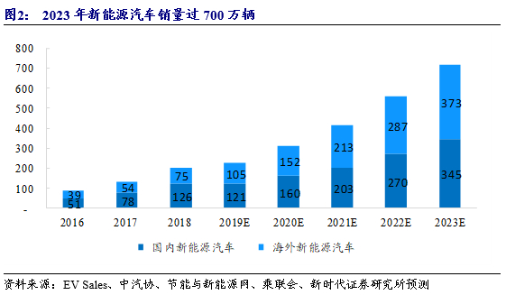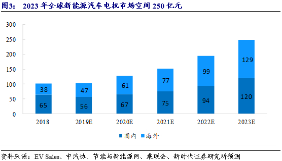 我们预计到2023年,全球新能源汽车销量超700万辆。随着新能源汽车销量的增长,电机需求也随着增加。我们预计到2023年电机市场空间将近250亿元。