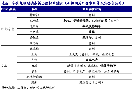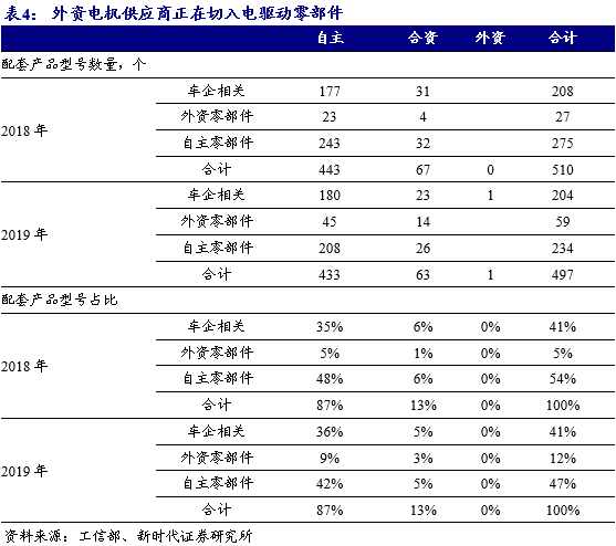 2.1、 目前国内电机电控以车企自配为主,外资TOP供应商正在切入