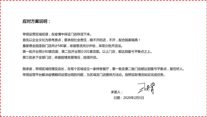 疫情之下,唇亡齿寒,高德福为整个餐饮行业忧心忡忡,“餐饮企业能不能挺过这一关很关键,要咬牙坚持”“我对外发声的出发点只有一个,希望整个行业好”。喜家德多年来恪守“责任”文化,为此全面公开花费巨大心力构思的疫情应对“九阴真经”。这是一个餐饮老兵的苦口婆心,更是一个优秀企业、优秀企业家的担当。愿各企业齐心协力,共渡难关。