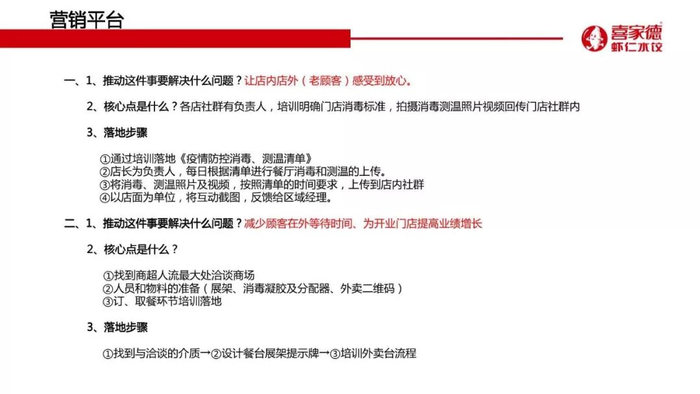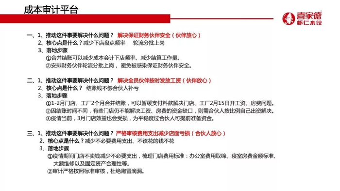 喜家德拥有580家门店,设置的平台体系相对完善,包括运营、营销、采购等19个平台。希望以下实打实的干货有助于各企业挺过疫情难关。