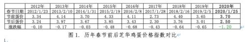 一般来说,鸡蛋现货价格受季节性影响春节后会不同程度的下跌,2012-2019年最大跌幅也仅为0.68元/斤。但今年受疫情影响,鸡蛋跌幅大幅超预期,节后芝华鸡蛋价格指数跌至2.5元/斤,比节前大幅下跌1.2元/斤,东北部分地区蛋价甚至跌破2元大关,而湖北省受疫情影响,大多地区贸易商仍处于停收状态。