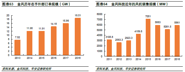 公司是国内最大风机企业。2018年,公司风机业务实现营收210.2亿元,同比增长12.3%,对外销售风机容量5861MW,同比上升15.34%。
