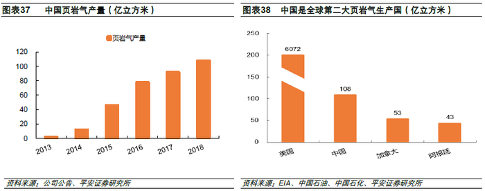 随着我国页岩气开采技术的突破,我国页岩气的开采量近年来呈爆发趋势,产量从2013年的2亿立方米快速增长到2018年的108亿立方米。国际上来看我国成为继美国之后全球第二天页岩气生产国,虽然目前跟美国的产量差距较大,但我们国家的页岩气储量全球第一,未来的发展潜力不容小觑。