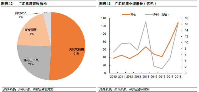 广汇能源主要业务包括煤炭、油气、现代煤化工、甲醇、能源物流等。公司业绩在2016年处于低谷,近年来营收和利润增长较好。