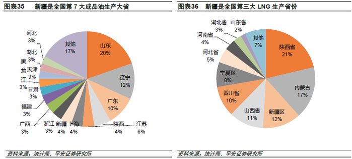 新疆是我国重要的油气生产基地和进口通路。新疆坐拥全国近1/5的油气资源,还是我国油气进口的重要通路。凭借丰富的资源储量,新疆成为我国第四大原油和第三大天然气生产省区;新疆还是我国重要的炼油基地和天然气加工基地,成品油产量和LNG产量分别位列全国第七和第三。新疆加大了非常规油气资源的勘探和开采力度,2020年1月份,国家全面放开油气勘探开采领域,将为新疆的油气油服公司和相关社会资本带来更多的业务机会。