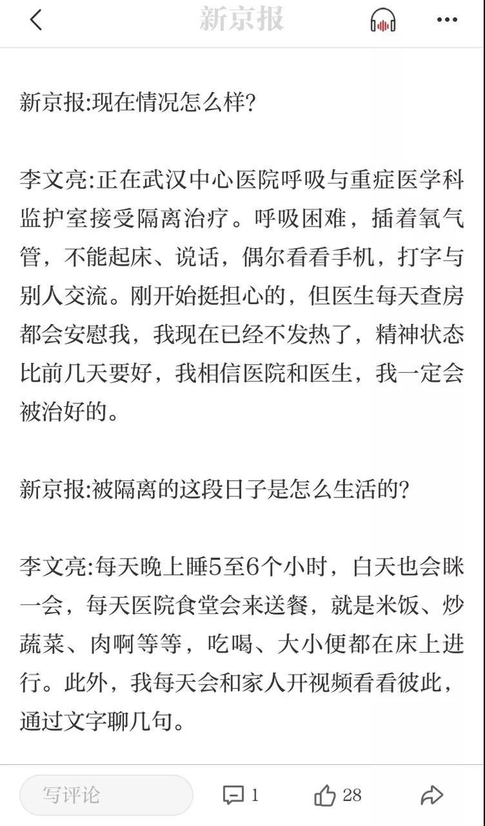 李文亮曾在媒体上留下的只言片语