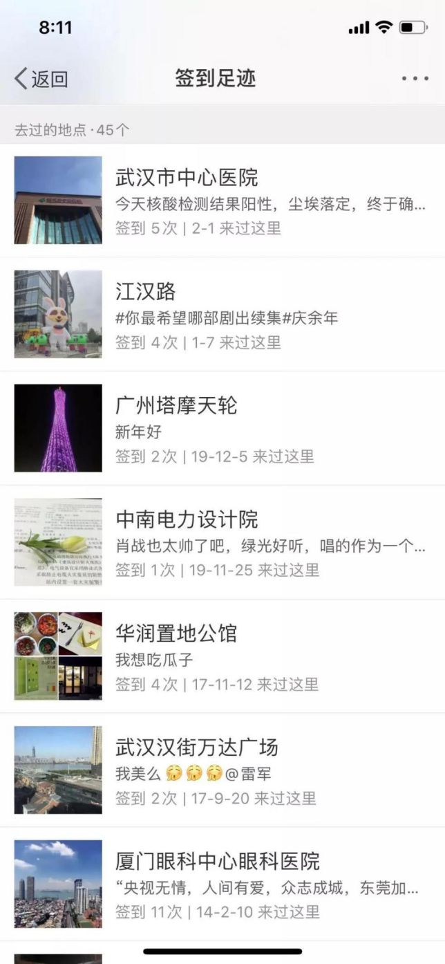李文亮的微博记录,他这些年一共去过45个城市,唯一的一次出国是去印度尼西亚。